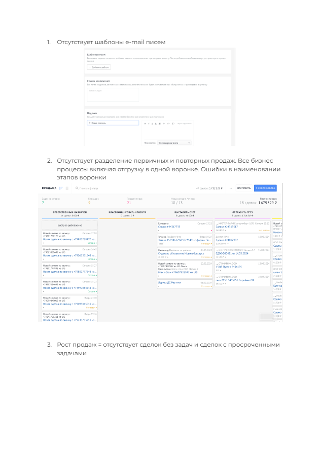 Непрозрачная работа менеджеров. Нельзя отследить показатели и установить планы продаж