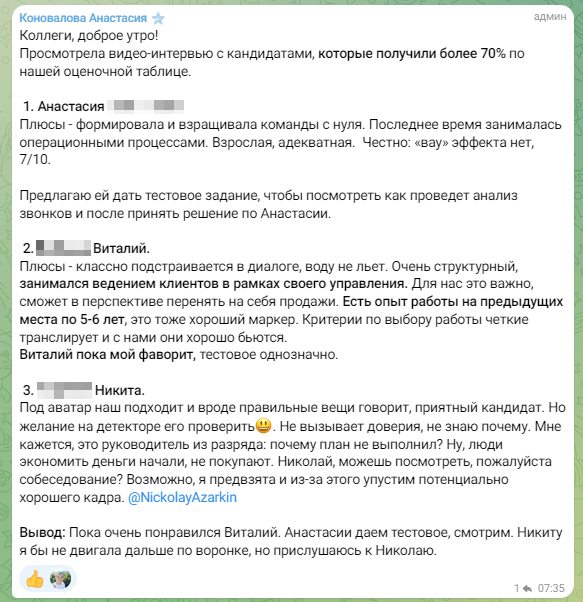 Несколько этапов отбора позволили нам нанять лучшего руководителя