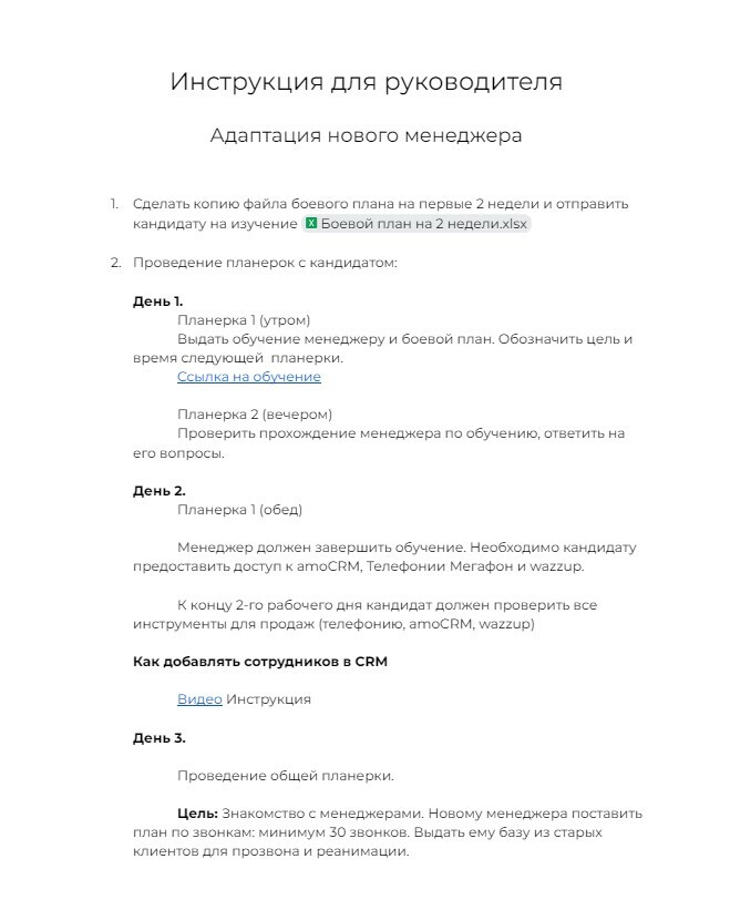 "Боевой план", который мы разрабатываем на первые 2 недели работы стажера, содержащий первые и понятные шаги в новой должности.