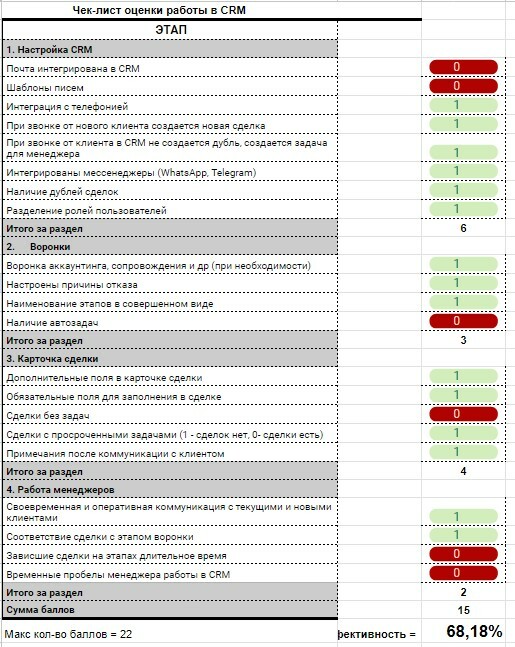 Провели аудит текущей настройки CRM-системы для оценки качества работы со сделками/клиентами.