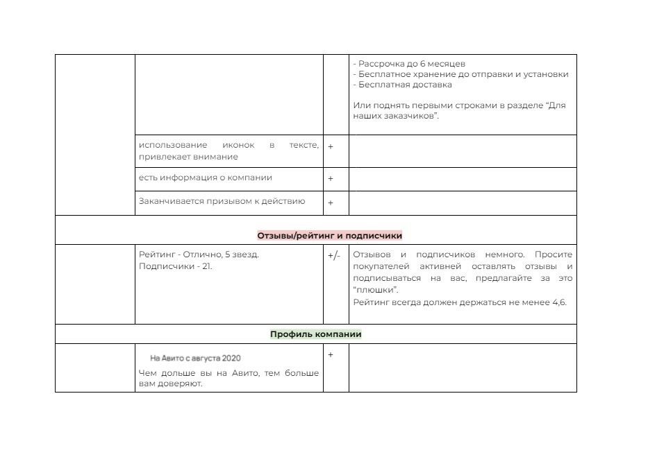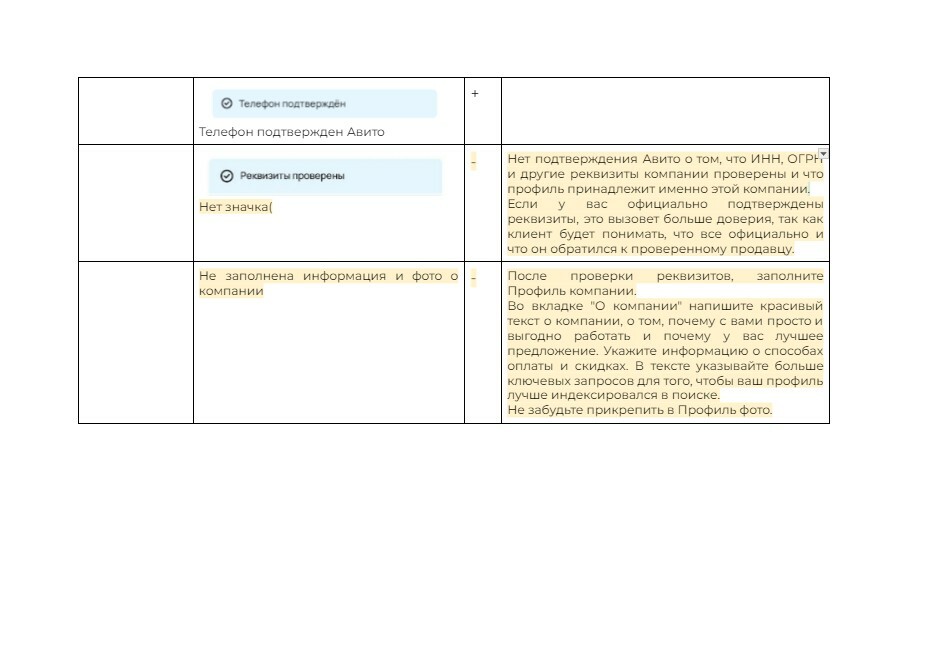 Провели аудит профиля и размещенных объявлений на интернет-сервисе Авито. Дали обратную связь.