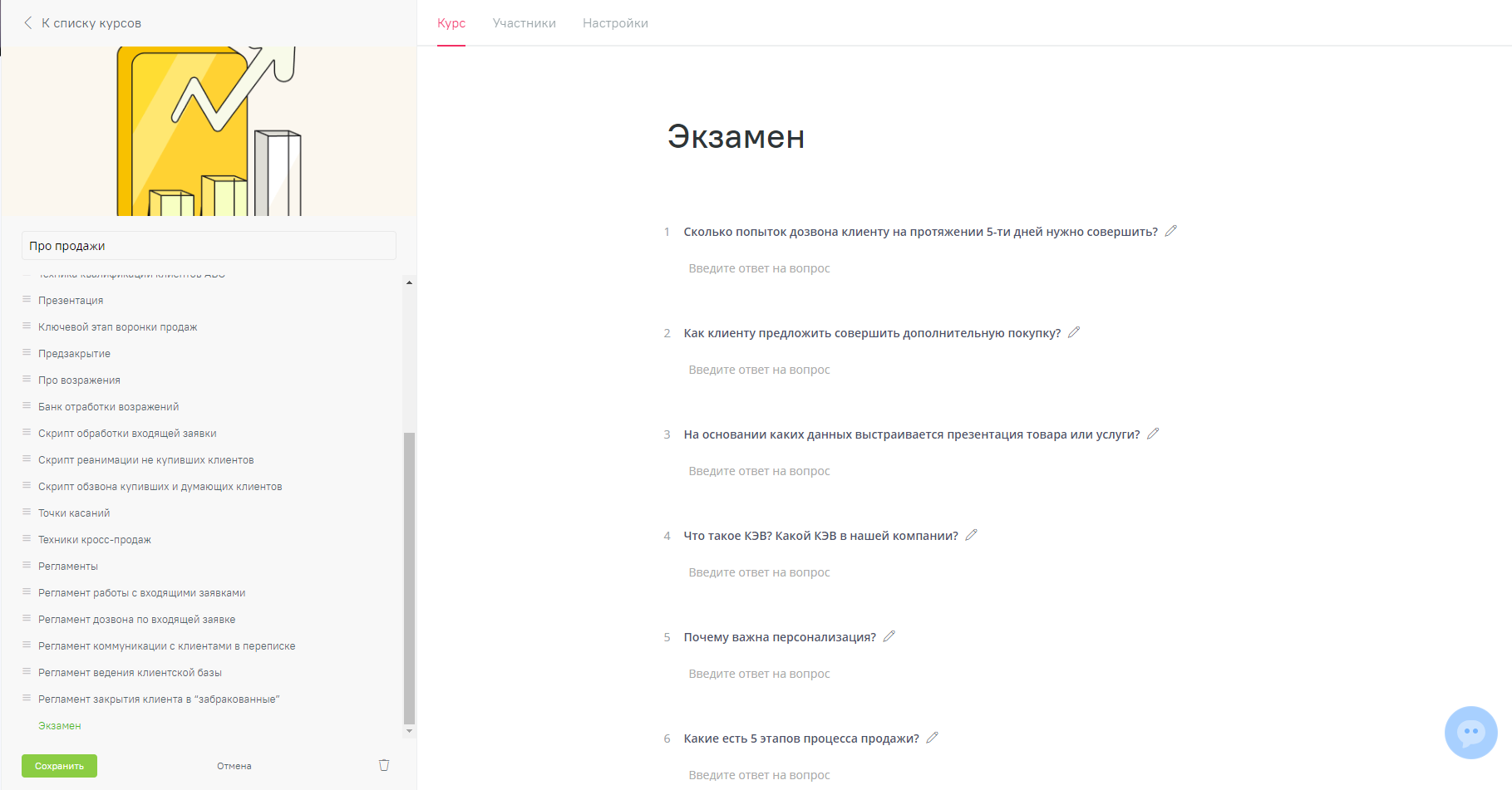 Создали Базу знаний и сформировали обучающие курсы с проверкой знаний