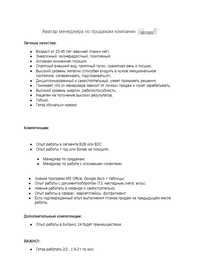 Провели с собственником бриф по найму и сформировали аватар МОП и РОП