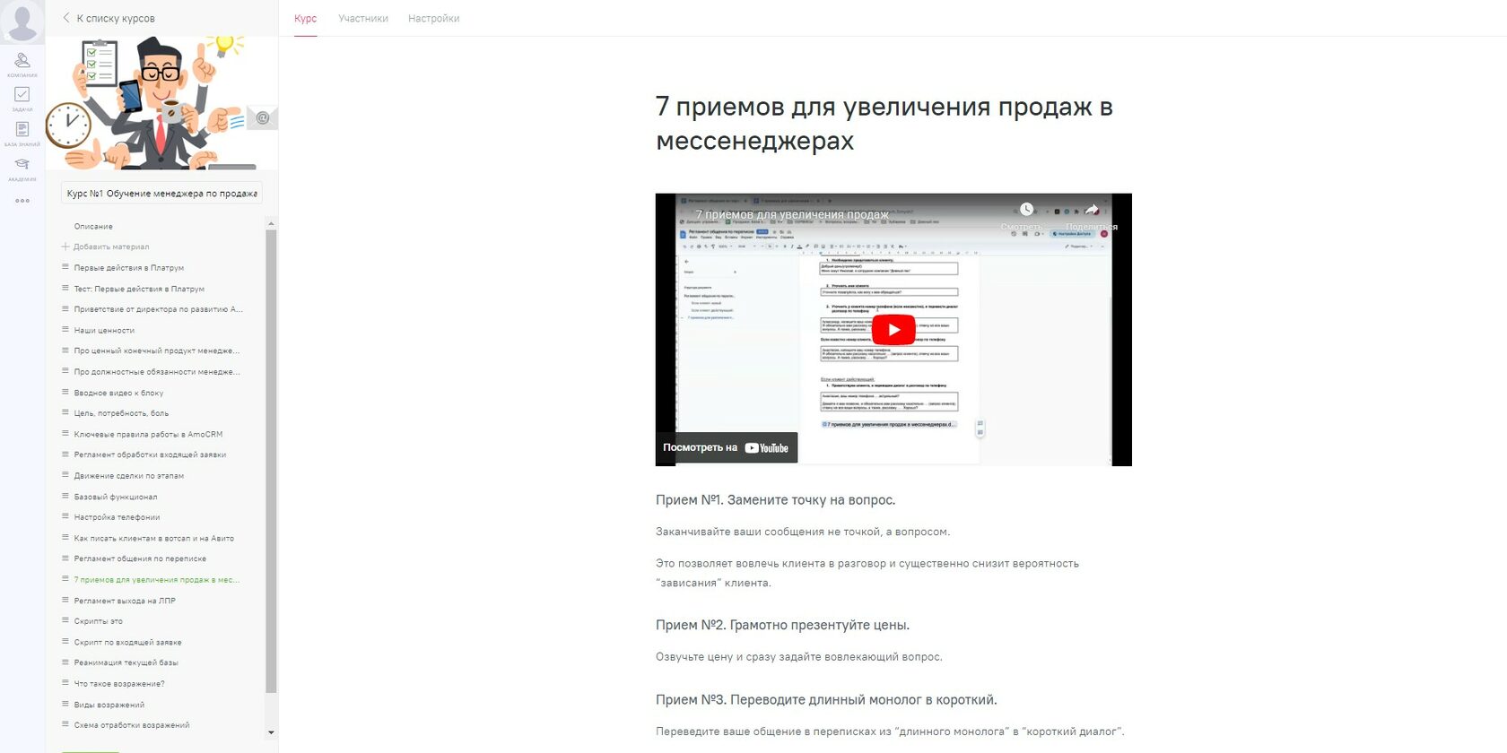 Создали видео-обучение по amoCRM для руководителей, включающее блоки: