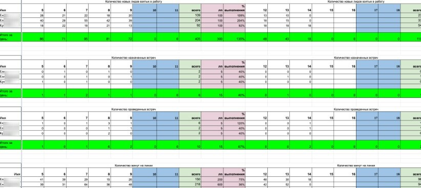 Детальные отчеты работы каждого менеджера с дневной декомпозицией