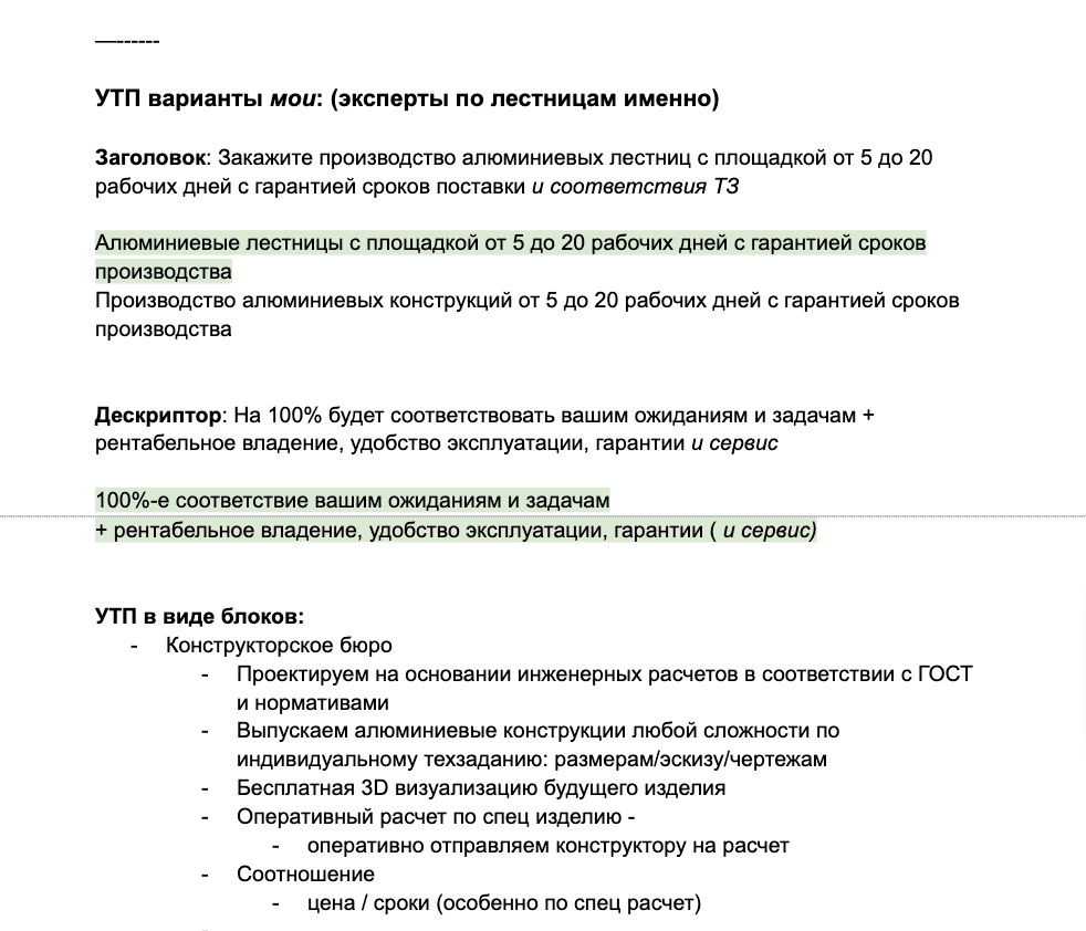 Разработали УТП, боли сегментов ЦА и ценностные предложения: