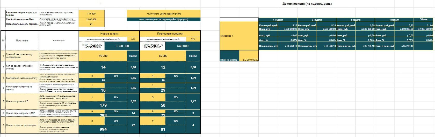 Кроме того, был разработан ежемесячный план продаж с недельной и дневной декомпозицией, обеспечивающий более эффективное управление и контроль над достижением целей менеджеров.