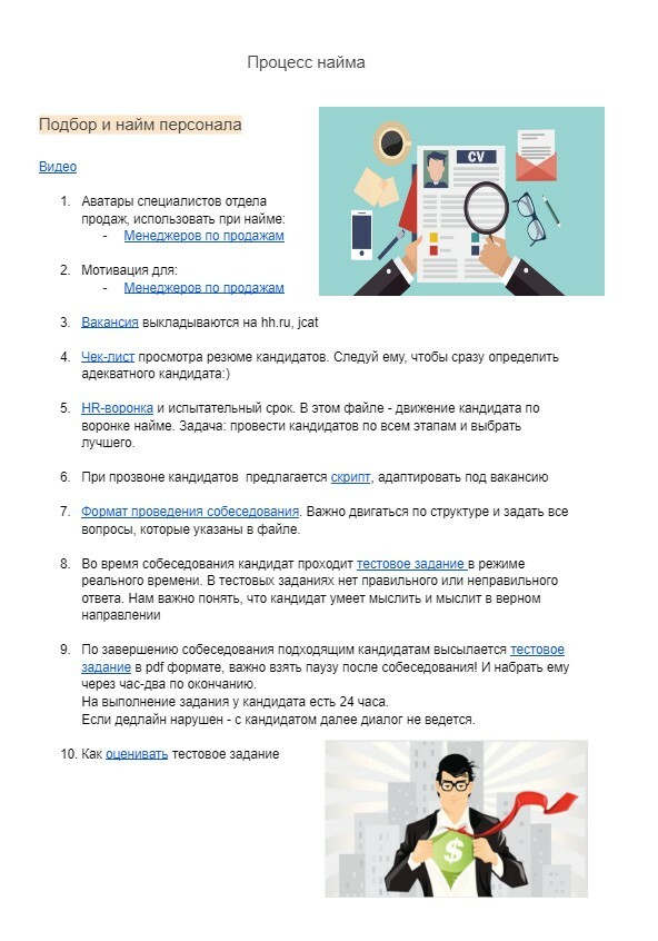 Сформированное обучение для сотрудников отдела продаж содержит также внутренние документы: от шаблона ежедневного отчета до библиотеки ОП.