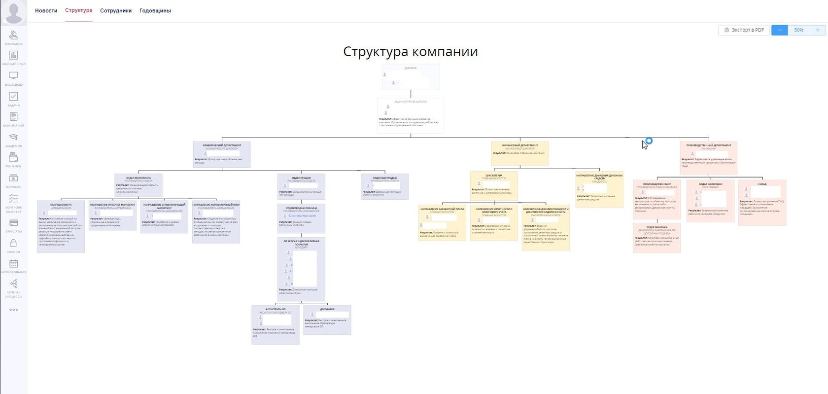 Концептуальная схема, которая показывает порядок функционирования всей компании и взаимодействие подразделений между собой.