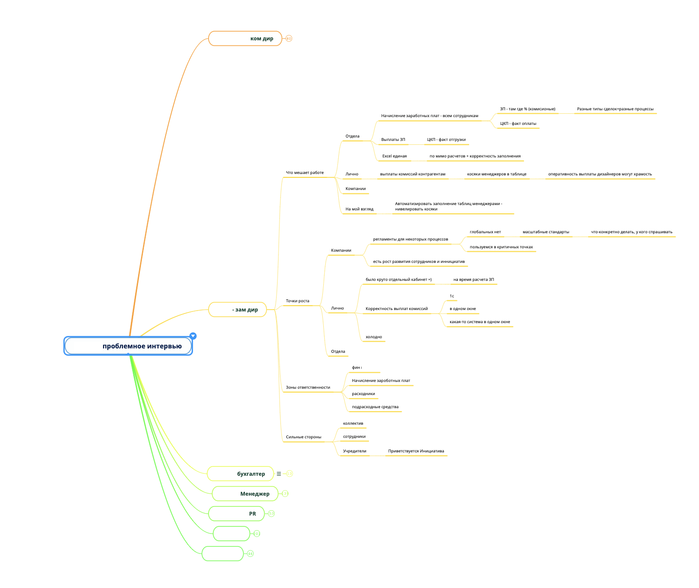 Провели проблемные интервью с сотрудниками и руководителями компании - создали дорожную карту развития.