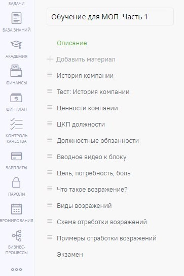 Сформирован обучающий блок для МОП в сервисе автоматизации менеджмента Platrum, содержащий около 25 документов: обучающие файлы+ видео, скрипты для разных сегментов клиентов, разного рода шаблоны, внутренние и обучающие регламенты и т.п.